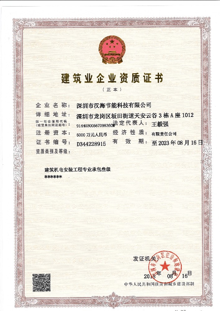 “建筑機(jī)電安裝工程專業(yè)承包叁級”資質(zhì)