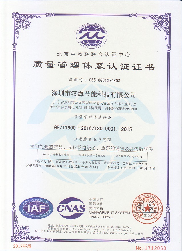 深圳市漢海節(jié)能科技有限公司成立于2011年,注冊資金6000萬元,總部設(shè)在深圳,是一家集設(shè)計(jì)、研發(fā)、施工于一體的專業(yè)化從事太陽能中央熱水工程、熱泵中央熱水工程、中央空調(diào)、光伏發(fā)電、水處理等新能源及節(jié)能環(huán)保行業(yè)的綜合服務(wù)商和工程商。在將近10年的發(fā)展歷程中,始終走在行業(yè)發(fā)展的前沿,是專業(yè)從事太陽能光熱、光伏,空氣源、太陽能熱水工程、水源熱泵,中央空調(diào),水處理產(chǎn)品的設(shè)計(jì)、安裝、售后服務(wù)為一體的高新技術(shù)企業(yè);是專業(yè)提供太陽能中央熱水工程、熱泵中央熱水工程、中央空調(diào)工程、光伏發(fā)電工程、水處理工程、太陽能熱水工程等全面解決方案的供應(yīng)商和工程商,產(chǎn)品涵蓋太陽能集熱器、空氣源熱泵、水源熱泵、中央空調(diào)、光伏組件、太陽能熱水工程等,是新能源的倡導(dǎo)者和推動者。公司成立以來,始終秉承“誠信、責(zé)任、專業(yè)、高效”的服務(wù)宗旨,以市場需求為導(dǎo)向,以為客戶創(chuàng)造價(jià)值為己任的精神,不斷開拓創(chuàng)新,通過多年的快速發(fā)展,公司綜合實(shí)力躍居行業(yè)前列。漢海擁有一支經(jīng)驗(yàn)豐富、善打硬仗的專業(yè)高效團(tuán)隊(duì);擁有一批專業(yè)的高級工程師、中級工程師、二級建造師、造價(jià)工程師、電氣設(shè)計(jì)師、給排水設(shè)計(jì)師;擁有一批機(jī)電、安防、水、電等專業(yè)技術(shù)施工和售后人員,配備先進(jìn)齊全,實(shí)力雄厚,技術(shù)領(lǐng)先。漢海以質(zhì)量樹信譽(yù)、以工藝立標(biāo)桿、以管理創(chuàng)效益、以服務(wù)得人心,工藝水平在業(yè)界獨(dú)樹一幟,成為行業(yè)模仿的典范。漢海承建的機(jī)電工程(設(shè)計(jì)、施工)涉及星級酒店、賓館、高檔辦公樓、花園別墅、住宅小區(qū)、學(xué)校、水療中心、工廠等各種類型的工程,工程項(xiàng)目遍布全國各地。漢海將致力于成為全球信賴的新能源綜合服務(wù)商,為客戶提供新能源的全方位解決方案。未來,漢海將依托國家政策,積極開拓粵港澳大灣區(qū)、中國特色社會主義先行示范區(qū)市場及“一帶一路”沿線國際市場,推動新能源的新輝煌。