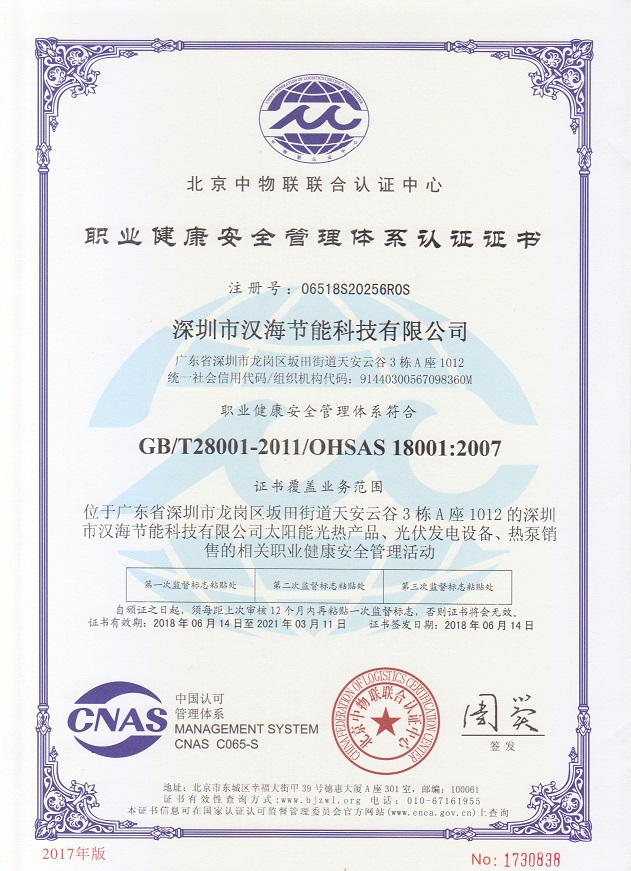 “職業(yè)健康安全管理體系認(rèn)證證書”資質(zhì)